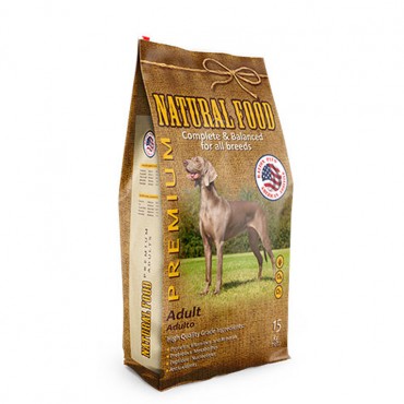 Natural Food Adult Dog es un alimento premium indicado para perros adultos de todas las razas. Formulado para generar alta digestibilidad y palatabilidad durante el crecimiento de los perros adultos. Contiene Ration Plus® que es un suplemento natural desarrollado en Estados Unidos, derivado de la combinación de vitaminas y minerales bio disponibles, agentes antioxidantes y metabolitos (como péptidos y nucleótidos) provenientes de la fermentación de algas marinas.